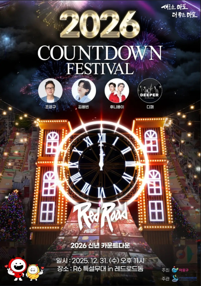 마포구(구청장 박강수)는 2025년의 마지막 밤, 새로운 한 해의 시작을 구민과 함께 맞이하기 위해 12월 31일 레드로드 R6 에어돔 일대에서 '2026 레드로드 카운트다운 페스티벌'을 개최한다.