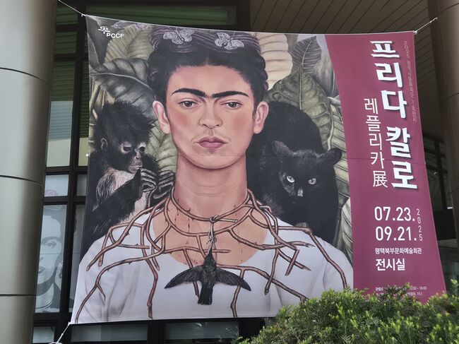 평택북부문화예술회관 전시실에서 오는 9월 21일까지 진행되는 '프리다칼로 레플리카展' 전경. 임강유 기자