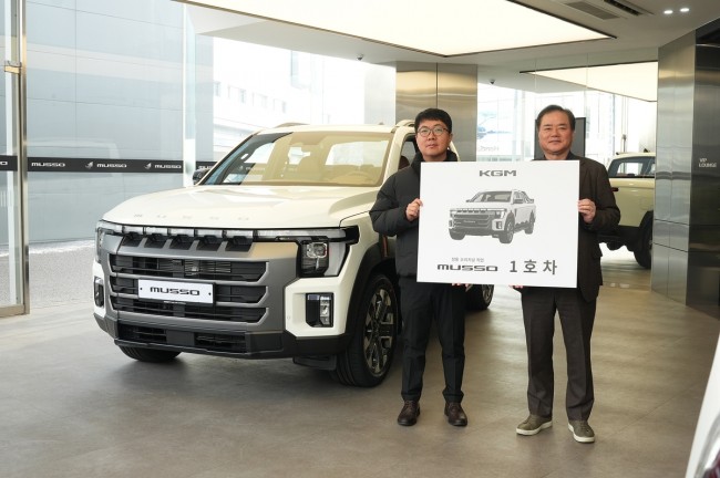 KG 모빌리티(www.kg-mobility.com, 이하 KGM)가 '무쏘' 1호차를 고객에게 전달하고 본격적인 출고를 시작했다고 20일 밝혔다.